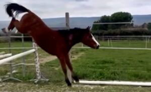 C’est une pouliche d’une gentillesse rare, qui s’est laissée mener en licol très tôt et se laisse toujours attraper avec facilité du premier coup.